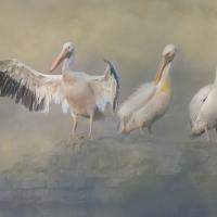 The second half comprised the judging of the digital entries, again with a strong entry but where Sue Blythe proved unbeatable in both the colour and mono sections. In the colour, a super shot of three pelicans in line was a deserved winner, the treatment quite artistic with what appeared good use of Photoshop in the foreground and background ensuring focus on the three subject birds. Barry Murphy’s aptly titled cormorant shot “Head Above Water” vied with Steve Johnstone’s shot of an echinacea flower reflected in water droplets for close runners-up, both a point behind. In the mono, Sue again showed her ability with a nicely constructed composite, “Whitby Goths” coming out in top place, two Goth figures seen against a silhouetted Whitby Abbey on the hills behind. Geoff Atkinson’s “Just Leaving”, a sepia toned shot of a steam engine at Castletown, followed up in second position.
